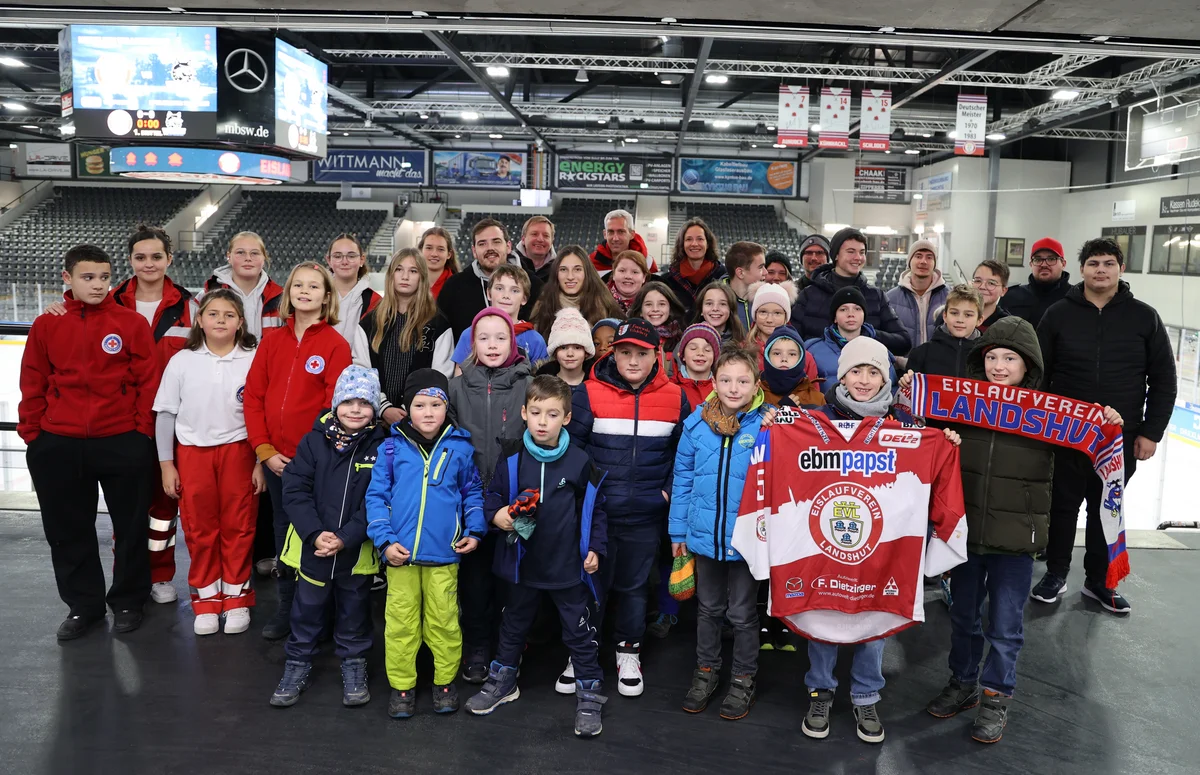 40 children and young people were able to take a look behind the scenes at EV Landshut on Friday afternoon at the invitation of the club and the DRÄXLMAIER Group. There were young members of the Vilsbiburg youth fire brigade, the Vilsbiburg and Geisenhausen water rescue services, as well as children from the conVincentius children's home. “As a family business, we are very pleased that EV Landshut is inviting so many children from Vilsbiburg and Geisenhausen to this fan afternoon. A look behind the scenes at their favorite club is an unforgettable experience for young people,” emphasizes Olivier Dubois, responsible for marketing and communications at DRÄXLMAIER.