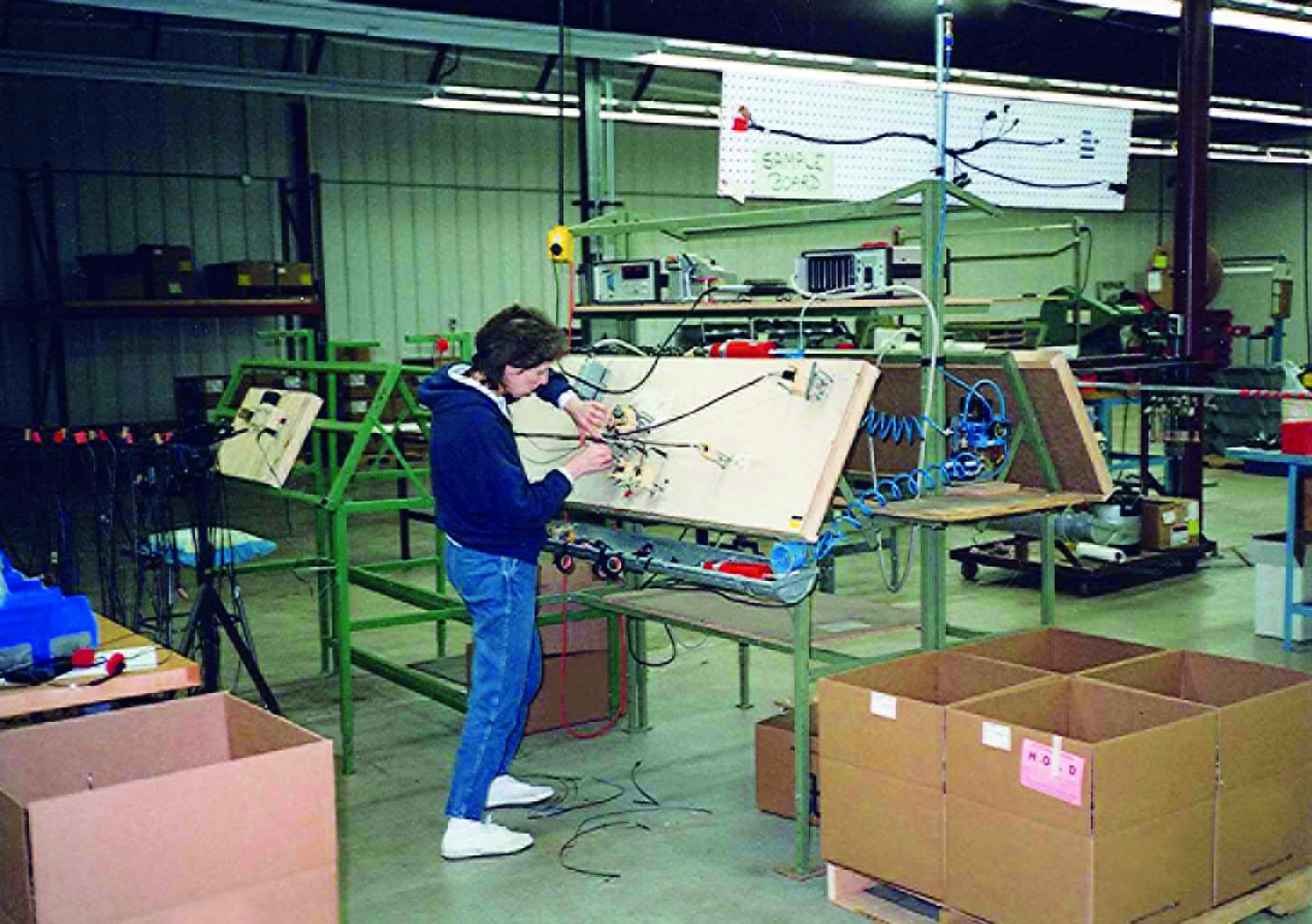 With the competitive advantage of operating in Canada slowly diminishing, the DRÄXLMAIER management decided relocate NETP to Wheatfield, N.Y., in 1985. Concentrating now entirely on the electrical segment, the company provided Ford, Volkswagen and other Tier 1 suppliers with harnesses for interior and exterior lighting systems, instrument clusters, wiper and A/C motors, instrument panels, and automatic break system controls. Many of these products came with insert-molded PVC grommets.